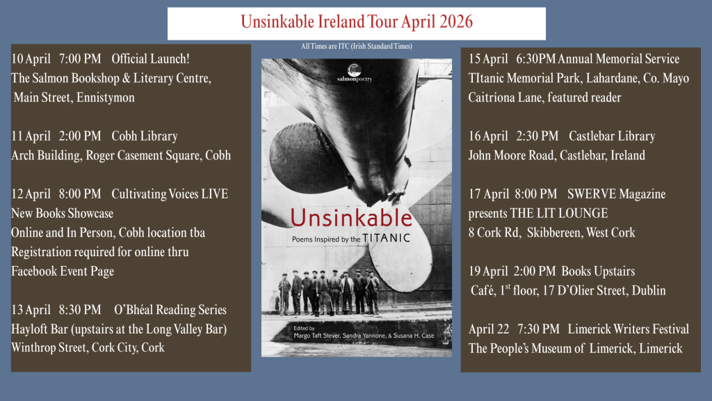 Join us on our launch of Unsinkable: Poems Inspired by the Titanic in Ireland, April, 2026: